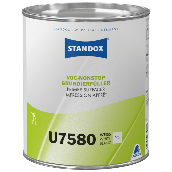 Gute Haftungs- und Korrosionseigenschaften zeichnen den Standox VOC- Nonstop-Grundierfüller U7580 aus. Er knüpft an den Erfolg des allseits bekannten und bewährten VOC-Nonstop-Füllprimer U7550 an und kann direkt auf Stahl- und Aluminium-Untergründe in der PKW-Reparaturlackierung aufgetragen werden. Mit dem neuen Standox VOC-Plastik-Additiv U7590 kann er direkt auf allen üblichen Kunststoffuntergründen in der PKW-Reparaturlackierung eingesetzt werden. So können mit nur einem Produkt viele unterschiedliche Untergründe wirtschaftlich (z.B. im Nass-In-Nass-Verfahren) grundiert bzw. lackiert werden.